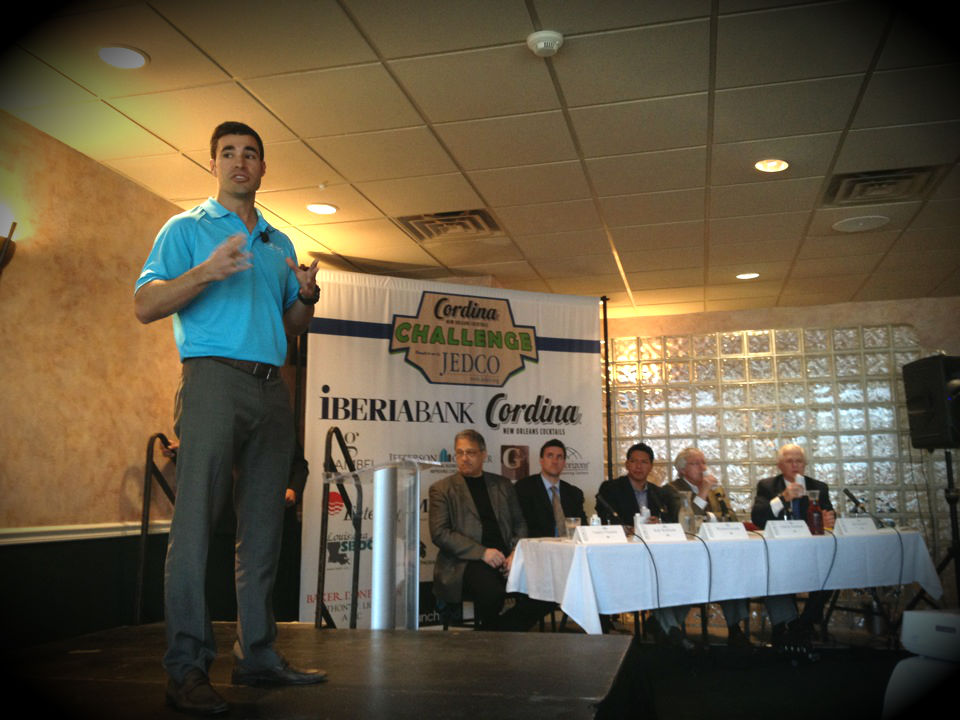 Each entrepreneur had just seven minutes to pitch in front of a packed house at Drago’s Empire Room. The winner was chosen by a panel of Jefferson Parish business leaders: Choose Taurman, co-founder of the South Coast Angel Fund; Richard Estrada, President of Crescent City Packaging; Jim Hudson, Chairman of the Southeast region of Iberia Bank, Rob Wollfarth, Baker Donelson attorney and Laney Chouest, founder of the NOLA Motorsports Park. The judges scored the entrepreneurs on presentation, innovation, ability to answer questions efficiently, Jefferson Parish impact, viability and scalability.