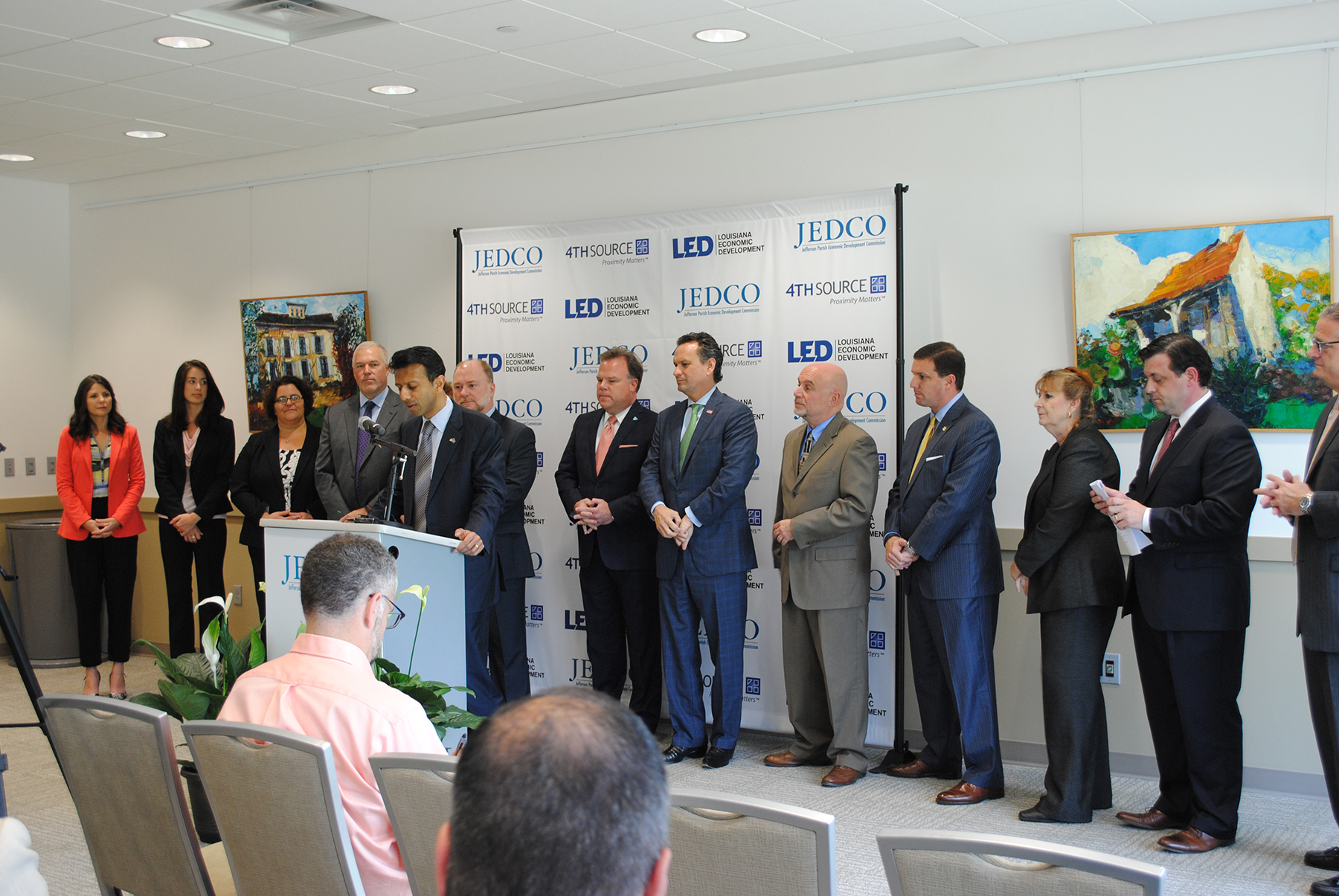 (KENNER, La) — Executives from a leading North American technology company officially announced plans to locate their corporate headquarters in Jefferson Parish. The Jefferson Parish Economic Development Commission (JEDCO), in conjunction with Governor Bobby Jindal, Jefferson Parish Government and the City of Kenner, joined 4th Source at the new JEDCO Conference Center to celebrate this significant announcement Thursday.