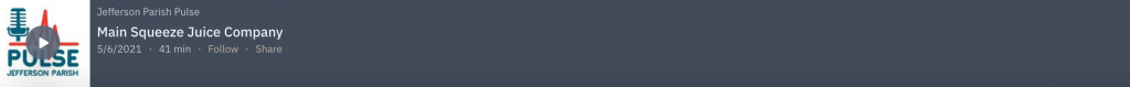 On this episode of the Jefferson Parish Pulse, we interview Jennifer Perkins and Andrew Blackwell, a sister-brother duo who co-own and operate multiple Main Squeeze Juice Co. franchise locations in the Greater New Orleans are. JEDCO provided Jennifer and Andrew with a JEDgrow Loan, giving them the financial backing they needed to open their first location in Metairie. Now, they’re running four locations with another one set to open later this year!