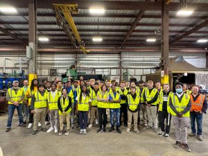 On Thursday and Friday, fifty selected eleventh graders from Fisher Middle-High School, L.W. Higgins High School, and West Jefferson High School toured four local manufacturing facilities. During these tours, the juniors connected with manufacturing professionals and were introduced to a variety of industry options and career pathways. Participating manufacturers included Carpenter and Patterson, Gulf Wind Technology, Alfred Conhagen, and Laitram.